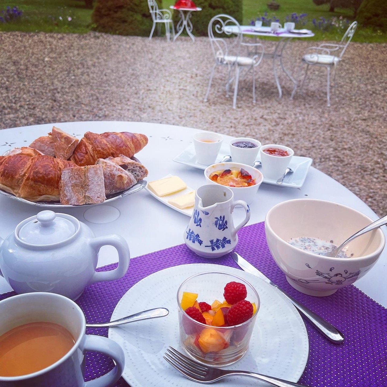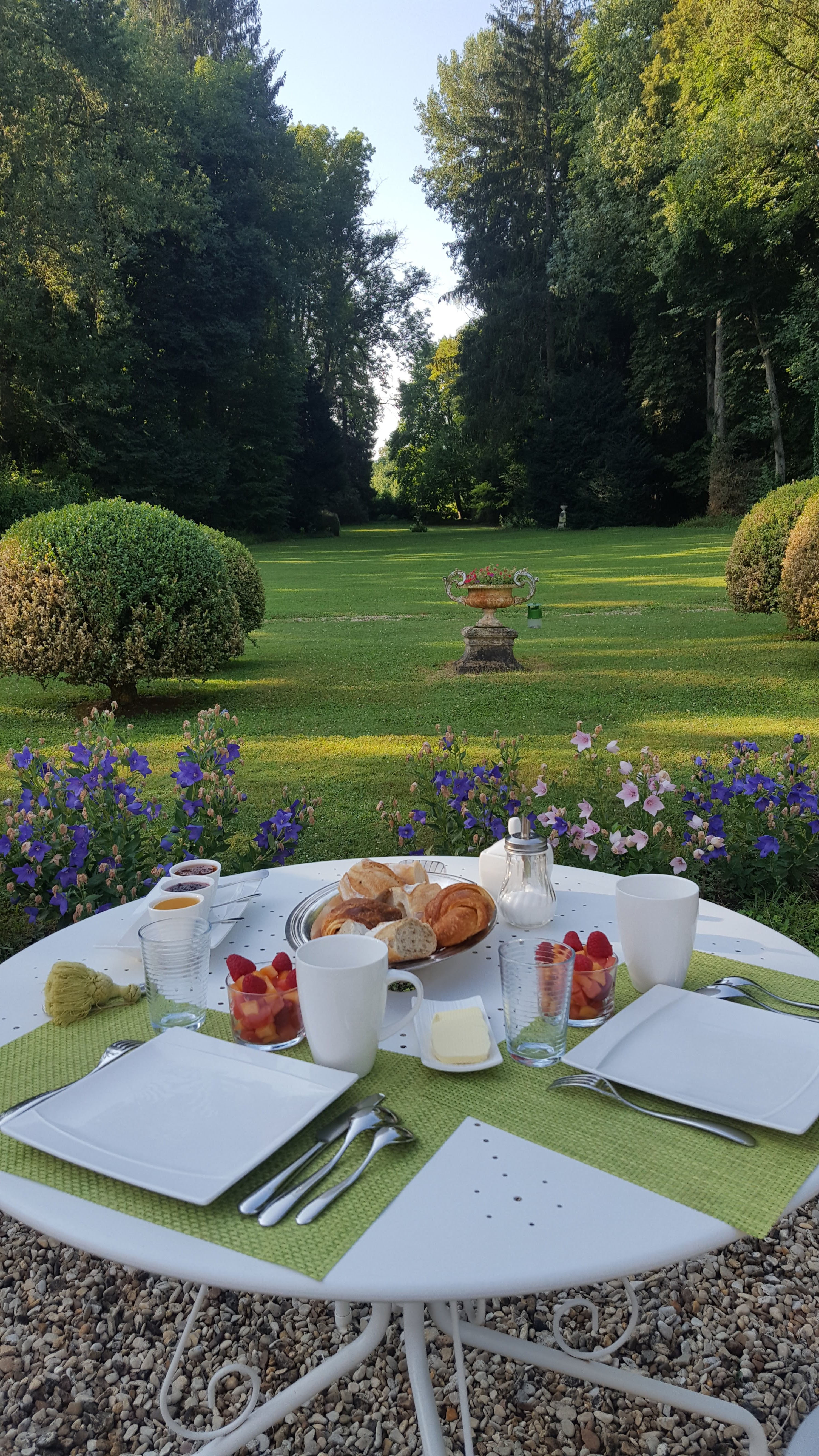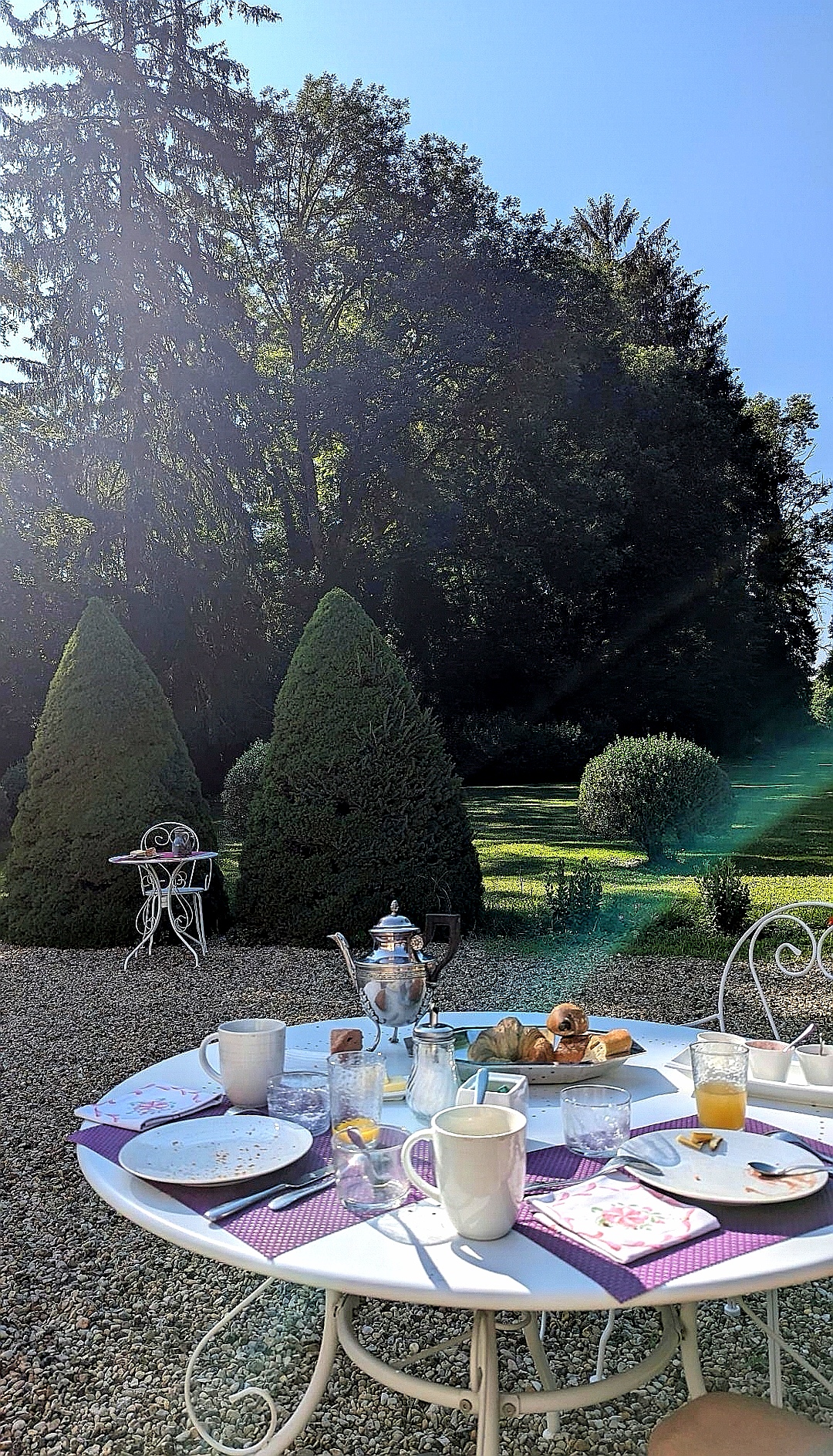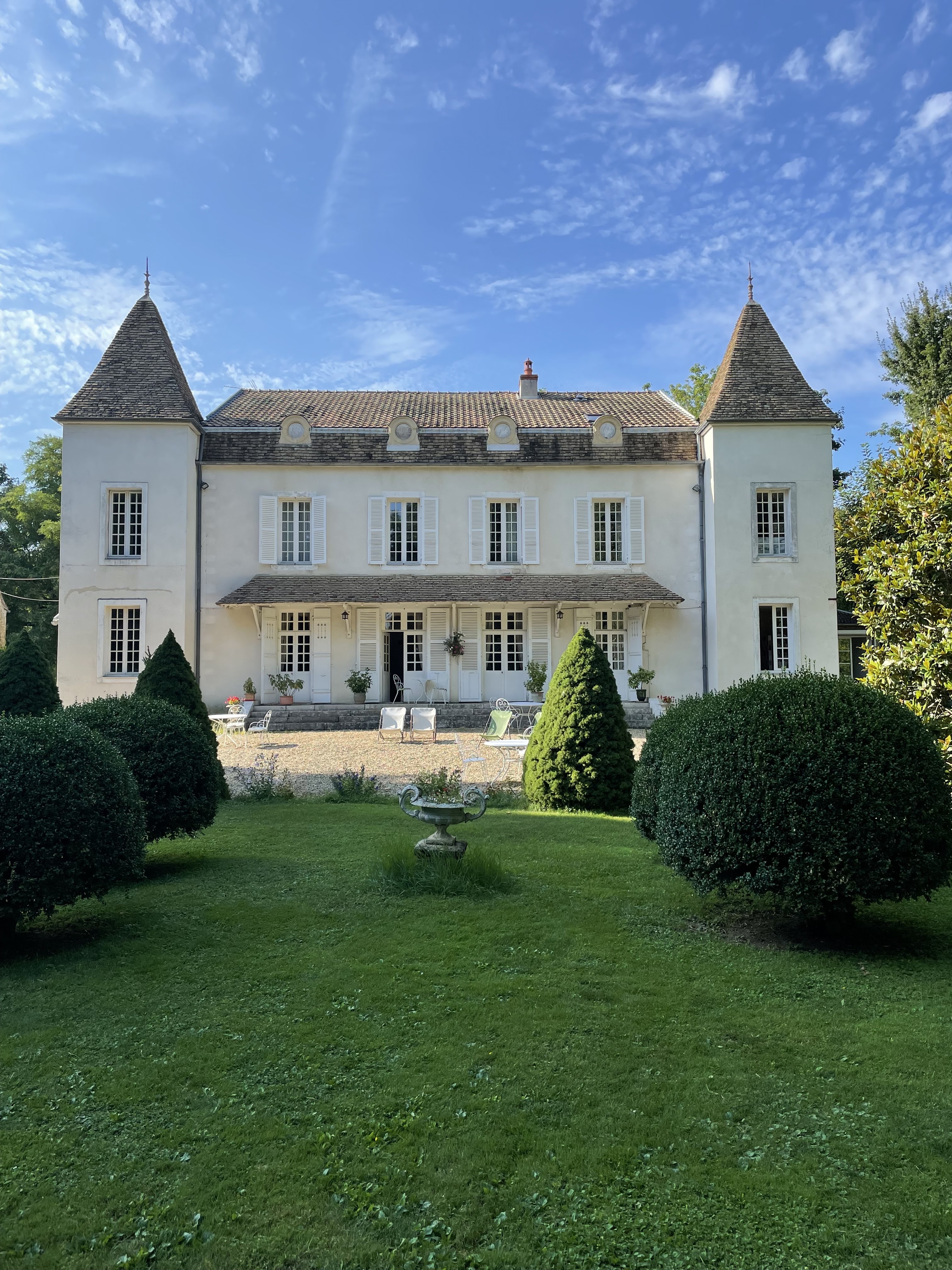Quand un verre de vin blanc et un petit morceau de fromage français offerts dans le splendide jardin d'un château bourguignon font la différence, le salon devient foyer et le geste devient pensif. L'accueil affectueux de Christine et Philippe a rendu le séjour au Domaine de Pellerey féerique et nous a donné envie d'y revenir bientôt. À bientôt!