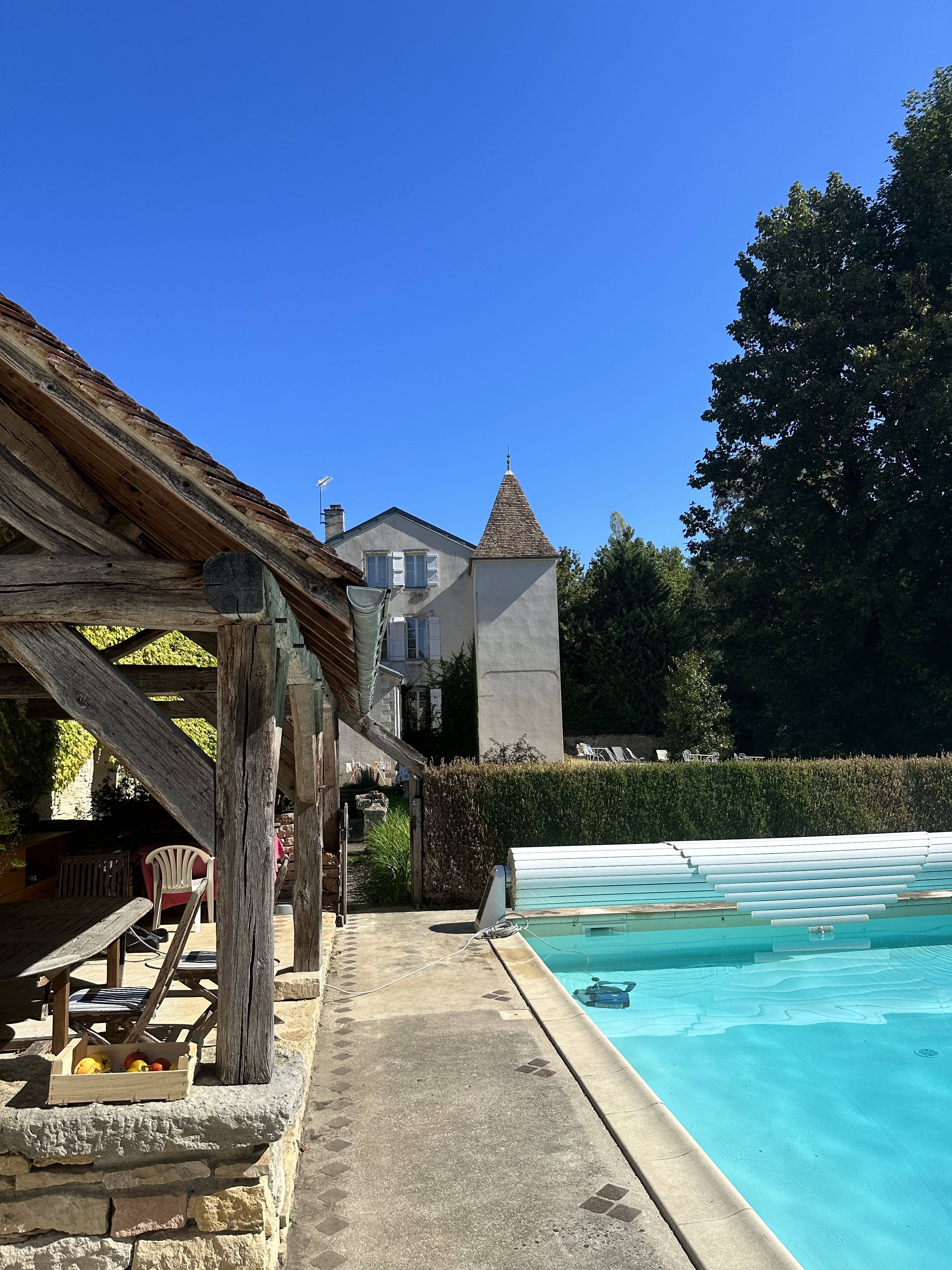 5 jours en Bourgogne, nos vacances de rêve et grâce à Christine et Philippe, nos hôtes super attentionnés, nous avons vraiment bien profité de la région pendant notre séjour. A notre arrivée pour la première fois, on a eu un peu de mal à trouver (il vaut mieux arriver avant qu'il fasse nuit! ), mais en fait c'est finalement très pratique pour aller visiter des caves à Nuits St Georges, Gevrey Chambertin et tous les villages de la route des vins de Bourgogne. Et pourtant c'est tellement calme! (chose dont on avait besoin!) Le nombre de chambres étant limité, on a pu vraiment nous reposer, dans un très bel espace qu'on a vraiment apprécié. (Surtout notre appartement avant une autre petite chambre séparée par des portes doubles et c'était parfait pour nous). Petits déjeuners de tous les matins, toujours accompagnés de flan aux fruits ou madeleines qui sortaient directement du four... Un petit frigo à la disposition des clients dans la bibliothèque... La piscine au calme avec une table à l'ombre... Et aussi la liste des restaurants commentés et envoyé à l'avance par mail, qui nous a permis de planifier /réserver nos dîners. En somme, une résidence parfaite pour découvrir en profondeur la belle région. Merci beaucoup, on reviendra!! Sachiko et Bernie (Irelande)