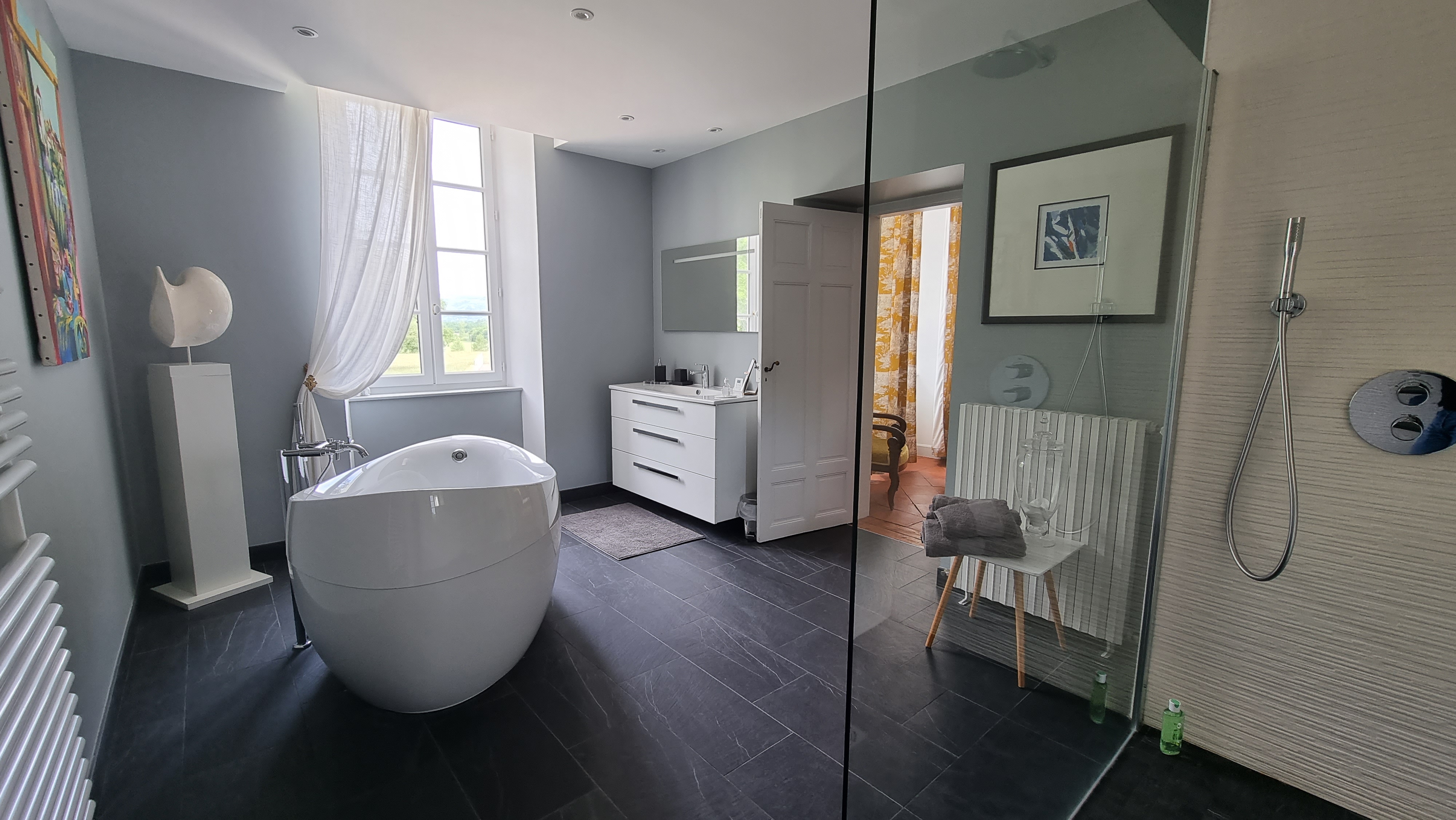 Adresse de luxe ou tout est fait pour vous satisfaire : très grande chambre avec salle de bains toute neuve, accueil exceptionnel, beaucoup d'échanges avec Pierre, petit déjeuner excellent : y-tout était parfait pour nous !!