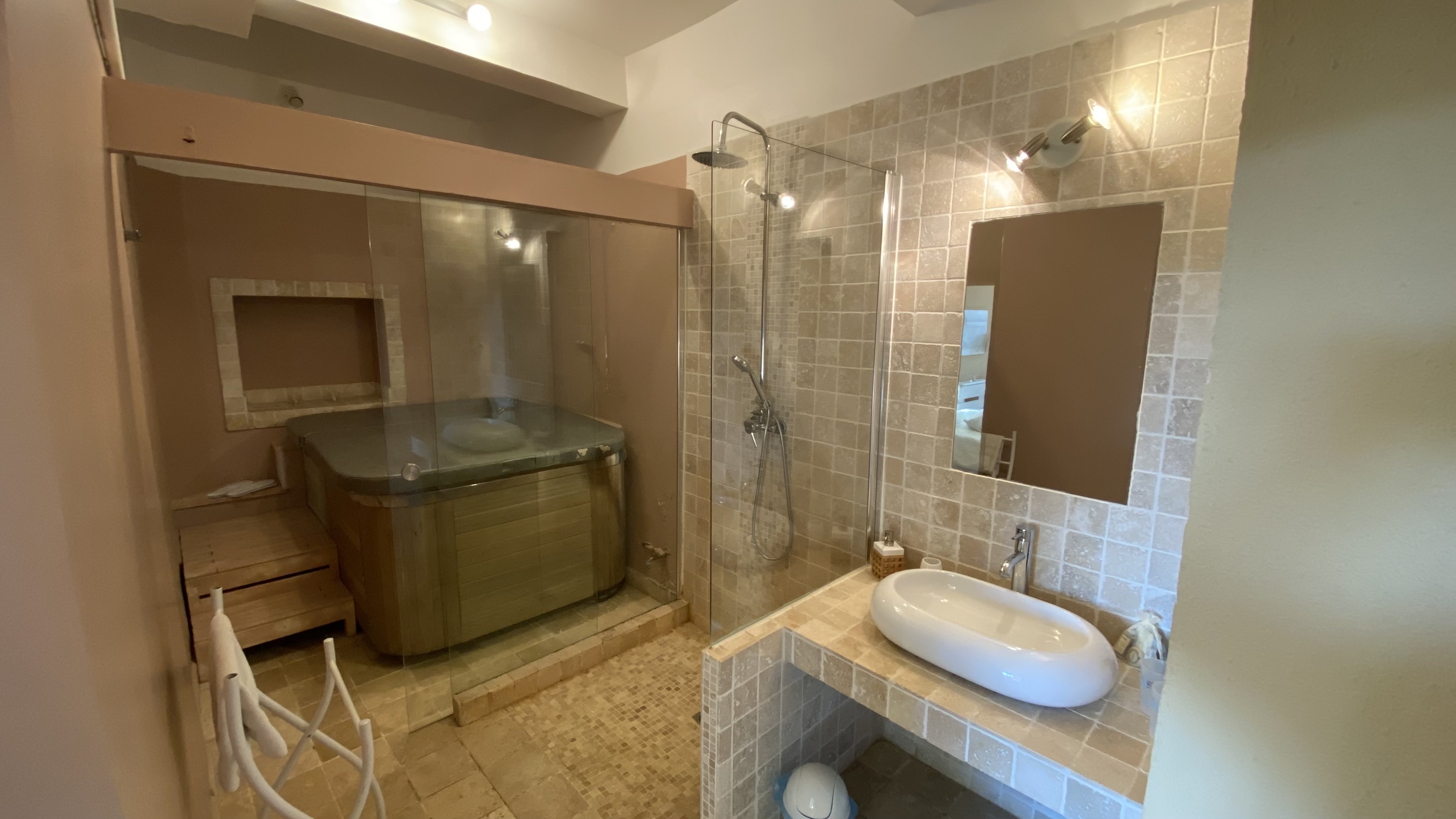 J'avais réservé lensemble des chambres pour l'occasion d'une retrouvaille familles et amis et fêter l'anniversaire de l'un d'entre nous. Pendant plusieurs semaines auparavant j'ai pu m'appuyer sur les propriétaires et leur employée Cyrielle très à l'écoute de mes besoins et à la recherche constante d'une solution pour organiser cette réception. Nous avons inauguré les deux dernières chambres finies à l'occasion de notre venue au dernier étage et on sait qu'ils ont travaillé dur pour cela, les chambres sont très belles, spacieuses, bien entretenues, et décorées avec goût. Le service est au top, un petit clin d’œil à Mr Roubaud qui s'est démené pour transférer le méchoui prévu plus bas à leur salle de réception à cause du temps menaçant! Nous avons profité des jacuzzis avec grande délectation et au calme. Bref tout était très bien. A ceux qui sont perpétuellement à la recherche des défauts plutôt qu'à profiter de leur vie, cet endroit et ceux qui le tiennent méritent le détour et félicitations! La campagne, l'authenticité, le calme, les chemins, la Provence, c'est comme ça chez nous. Si vous cherchez de l'aseptisé, de l'impersonnel, et des professionnels de l'hôtellerie en uniforme, allez dans les chaînes sur la côte, ce n'est pas ce qu'il manque.