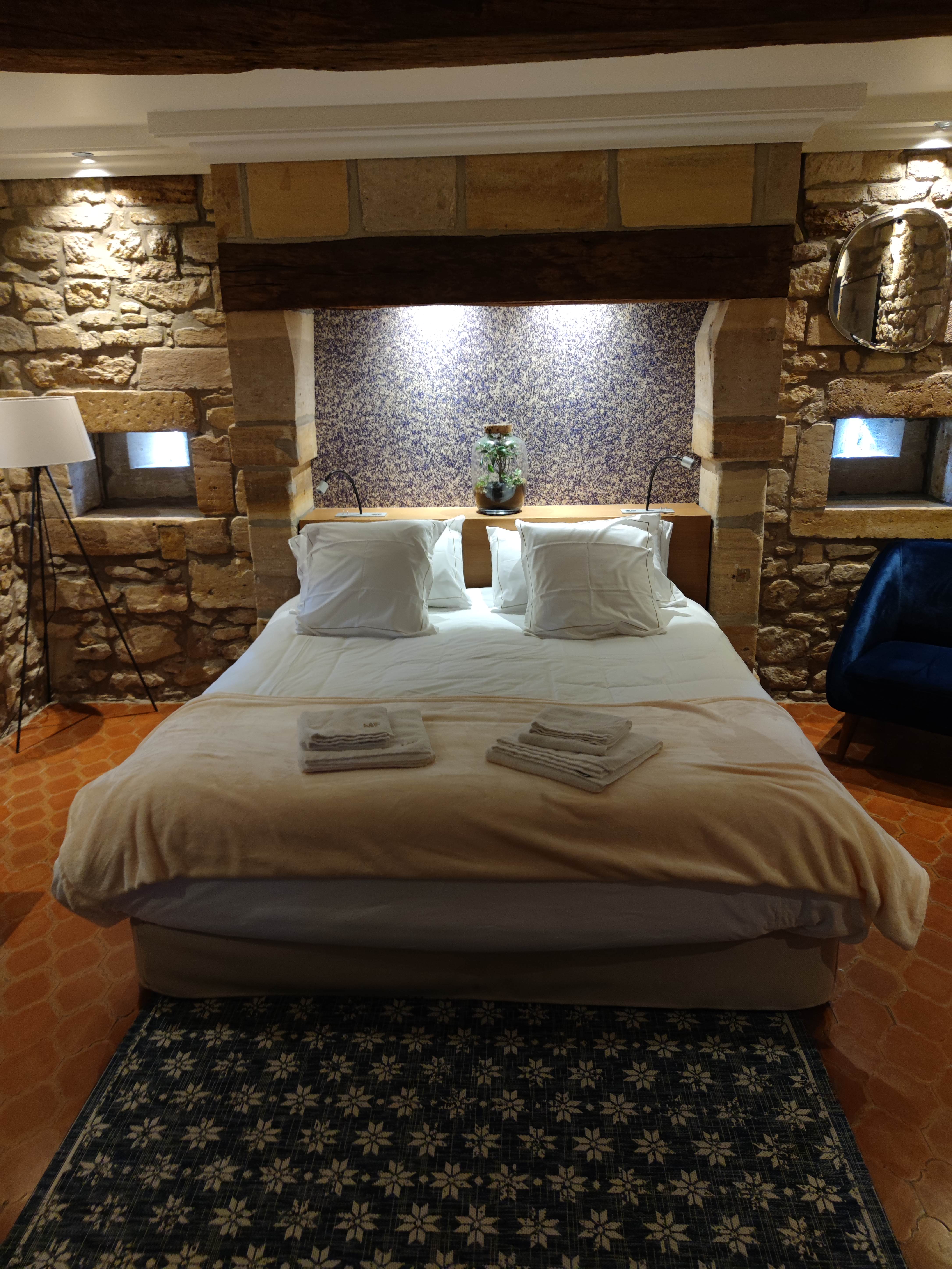 L'accueil très sympa,Caroline a toujours le sourire et est toujours a l’écoute. la chambre garde toute ça originalité de vieux château avec le mur en pierre et avec les anciens niche pour les archers.le petit déjeuner fait maison,avec des produits locaux. Calme tranquillité.. dépaysement total.