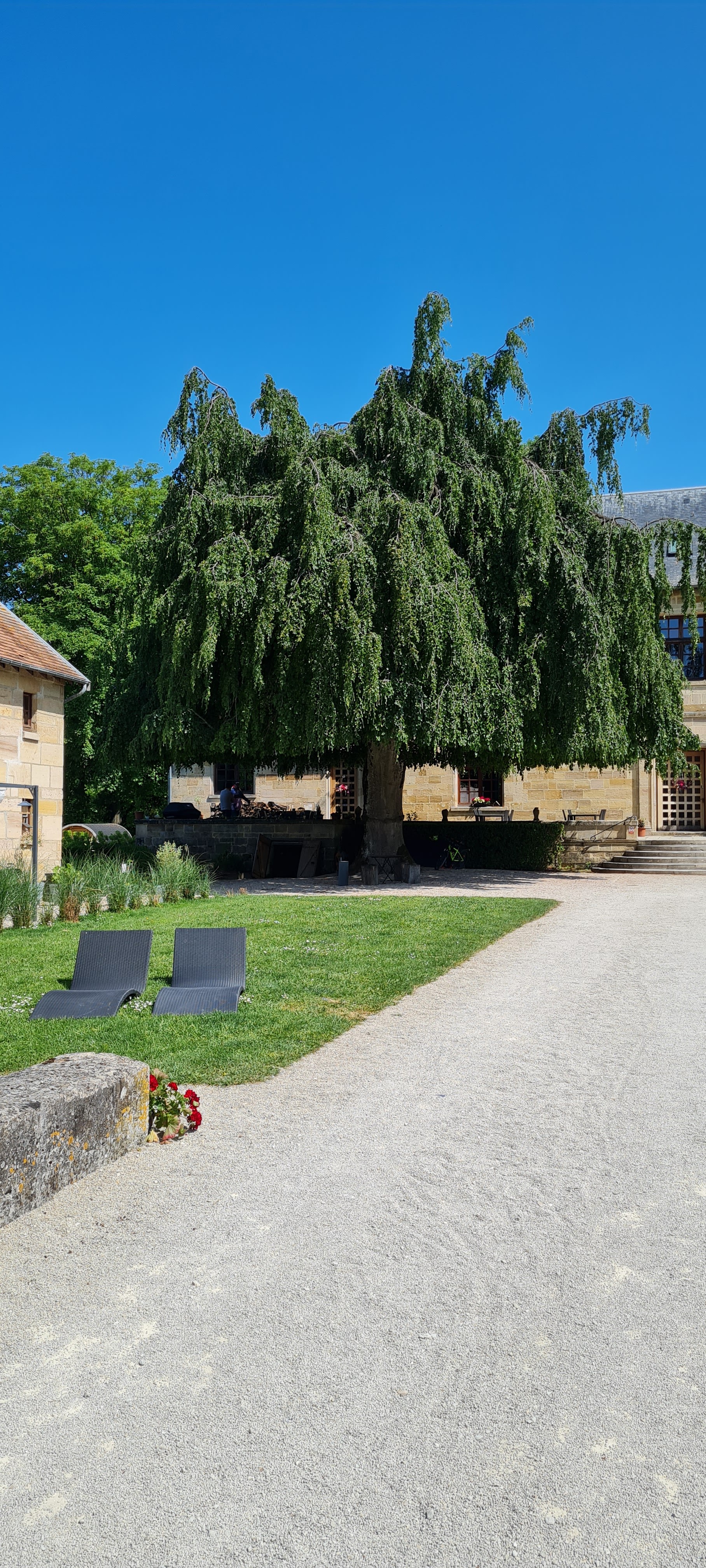 Bon gîte, agréable,avec un magnifique hêtre pleureur