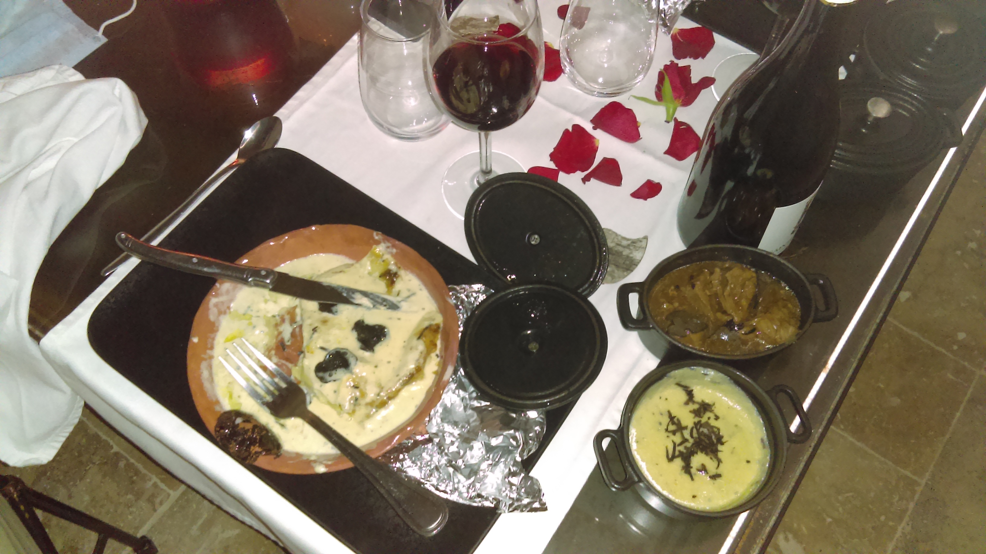 Le repas était bon. Le logement était super, par contre nous y avons acheté des truffes qui n'ont pas de goût et j'ai pas le covid.