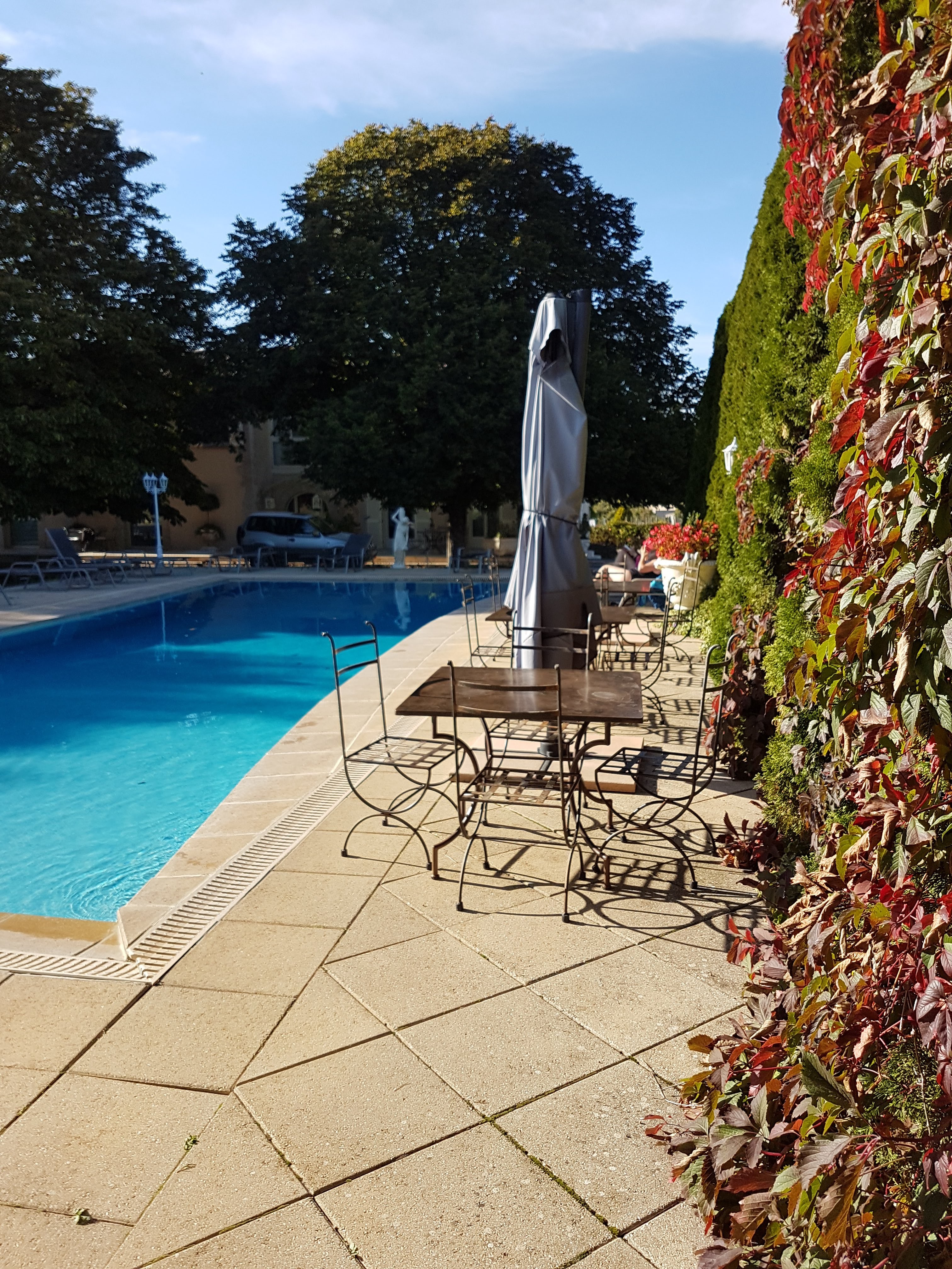 Domaine magnifique ! Et piscine sublime ! Nous regretterons cependant la chambre que nous avons eu : petite et avec une toute petite fenêtre et sans clim donc globalement nous y avons eu chaud. Je tiens a préciser que c'était les chambres d'entrée de gamme, d'autres chambres plus confortable sont a louer ! Pour autant, personnel super sympa et domaine vraiment vraiment vraiment magnifique ! Idéalement situé pour les gorges du Verdon !