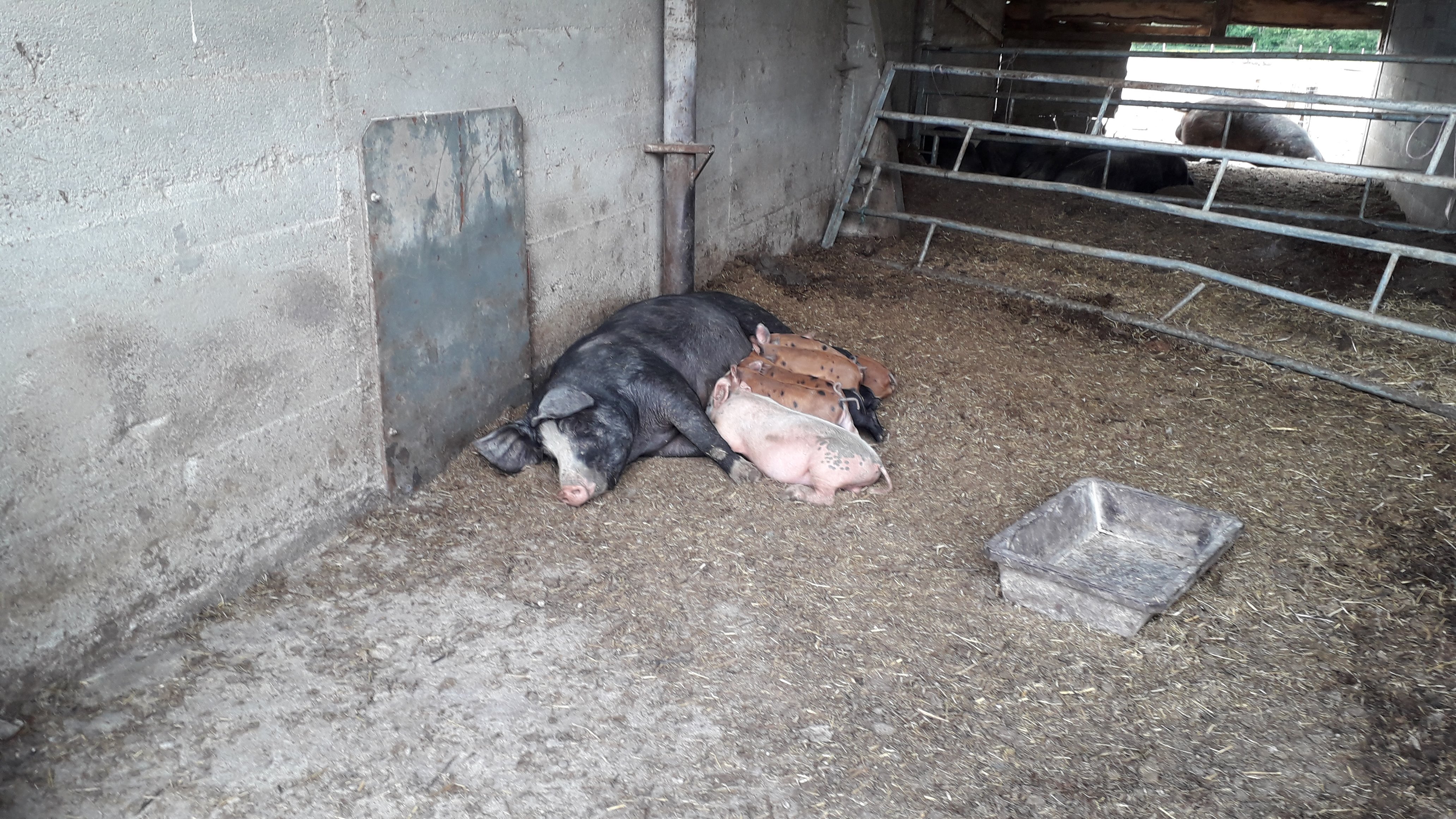 Avril 2017 . Une grande ferme en pleine nature . Des petits cochons rigolos , des chiens, des poules, des vaches . . . Un bon repas du soir .