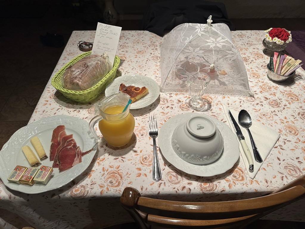 Chambre d’hôtes dans un bâtiment typique de la région. Accueil chaleureux et serviable. Situé au calme. Les chambres sont spacieuses. Grande pièces communes avec sont petit coin salon. Le petit déjeuné avec des produits locaux est copieux.