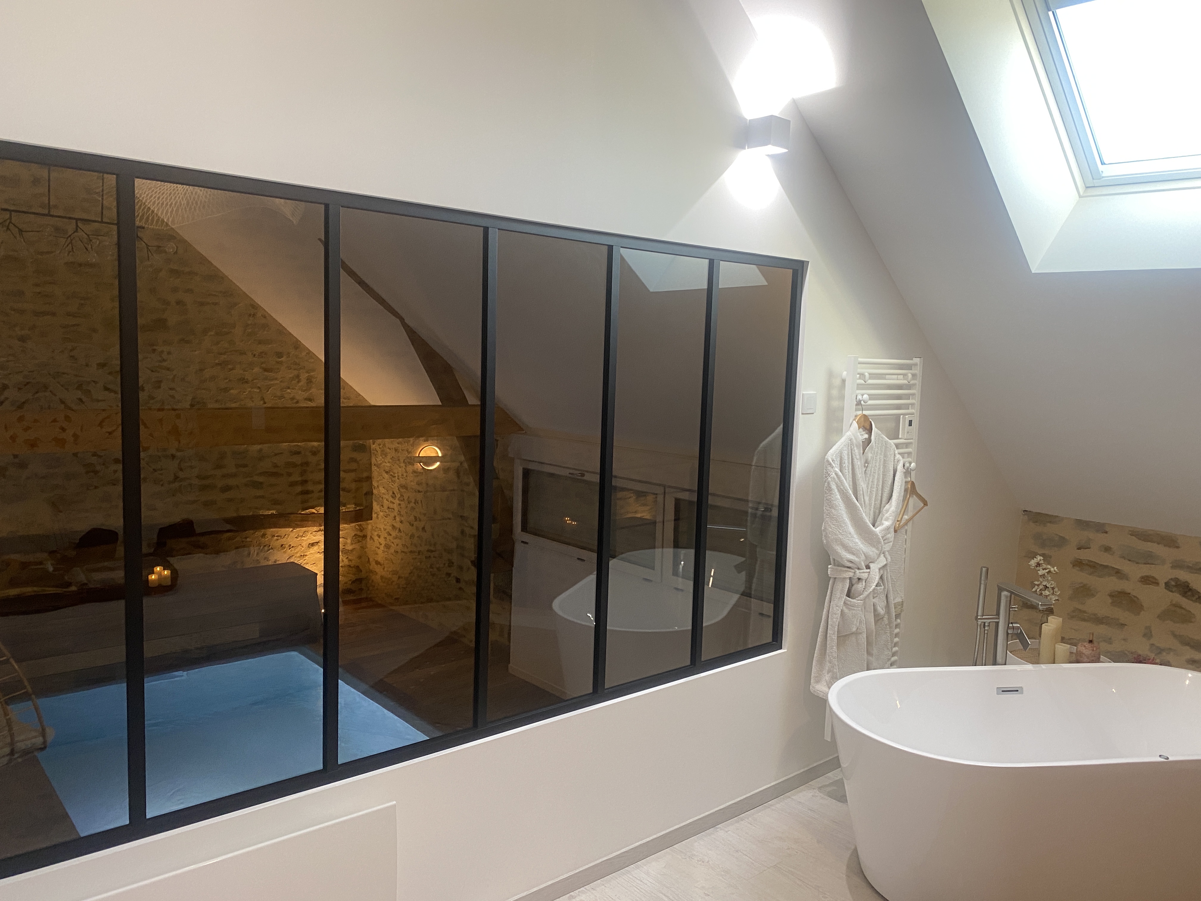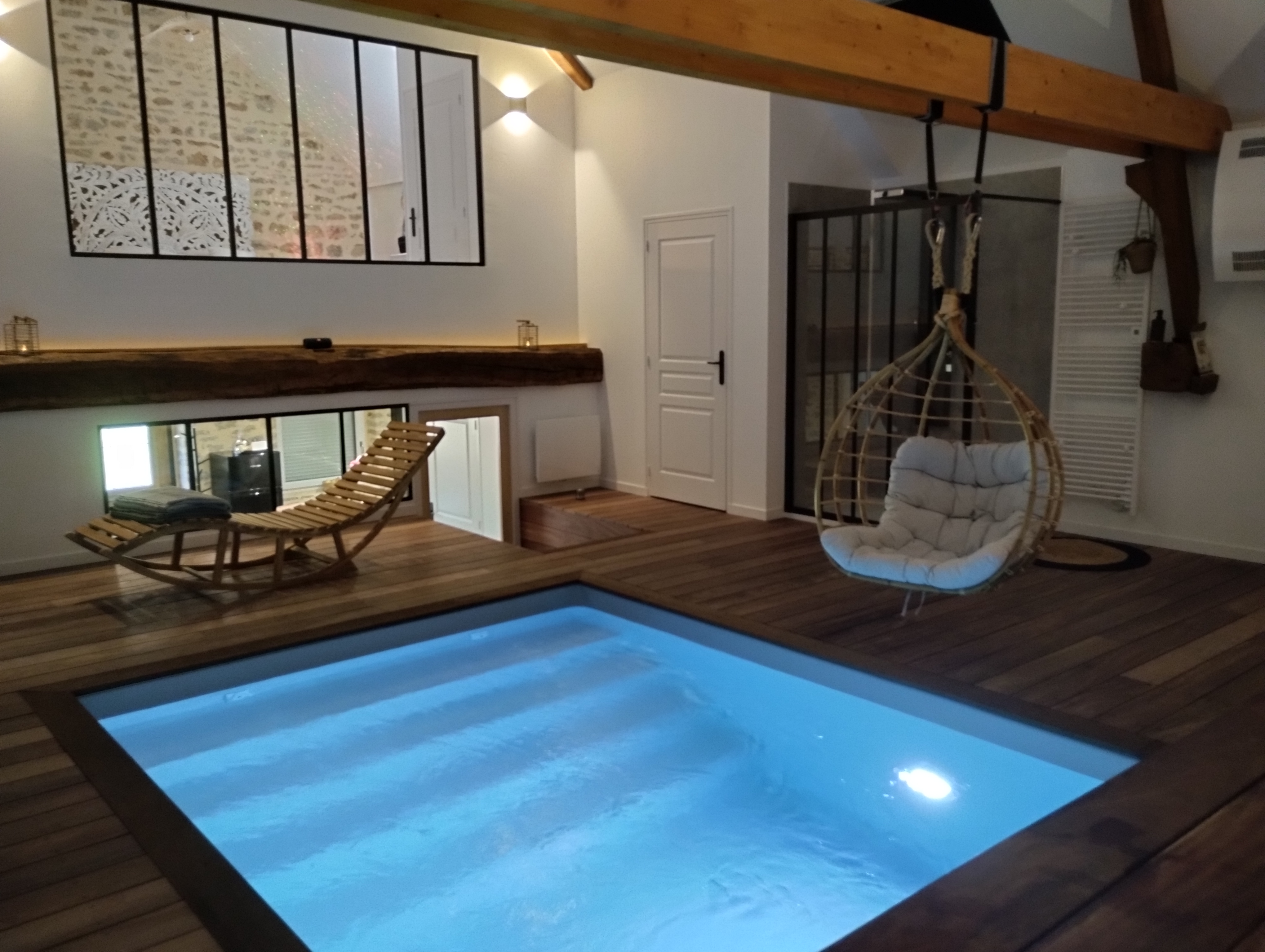 Je mets LARGEMENT 5 étoiles pour ce lieu unique. En ouvrant la porte je me suis dit WAOUHHHH c'est magnifique ! La décoration est très soignée et moderne ! C'est chaleureux et ça donne envie d'y passer du temps ! La chambre est très spacieuse, la literie très confortable et la baignoire à bulles est top ! Enfin une baignoire où 2 adultes peuvent s'y glisser sans problème. L'espace détente est super beau, le sauna avec enceinte connecté c'est juste génial ! Et lz coin piscine donne envie d'y rester toute la soirée ! Franchement rien à redire ! Hâte d'y retourner. Petit déjeuner copieux, dîner hyper bon... aucun point négatif !