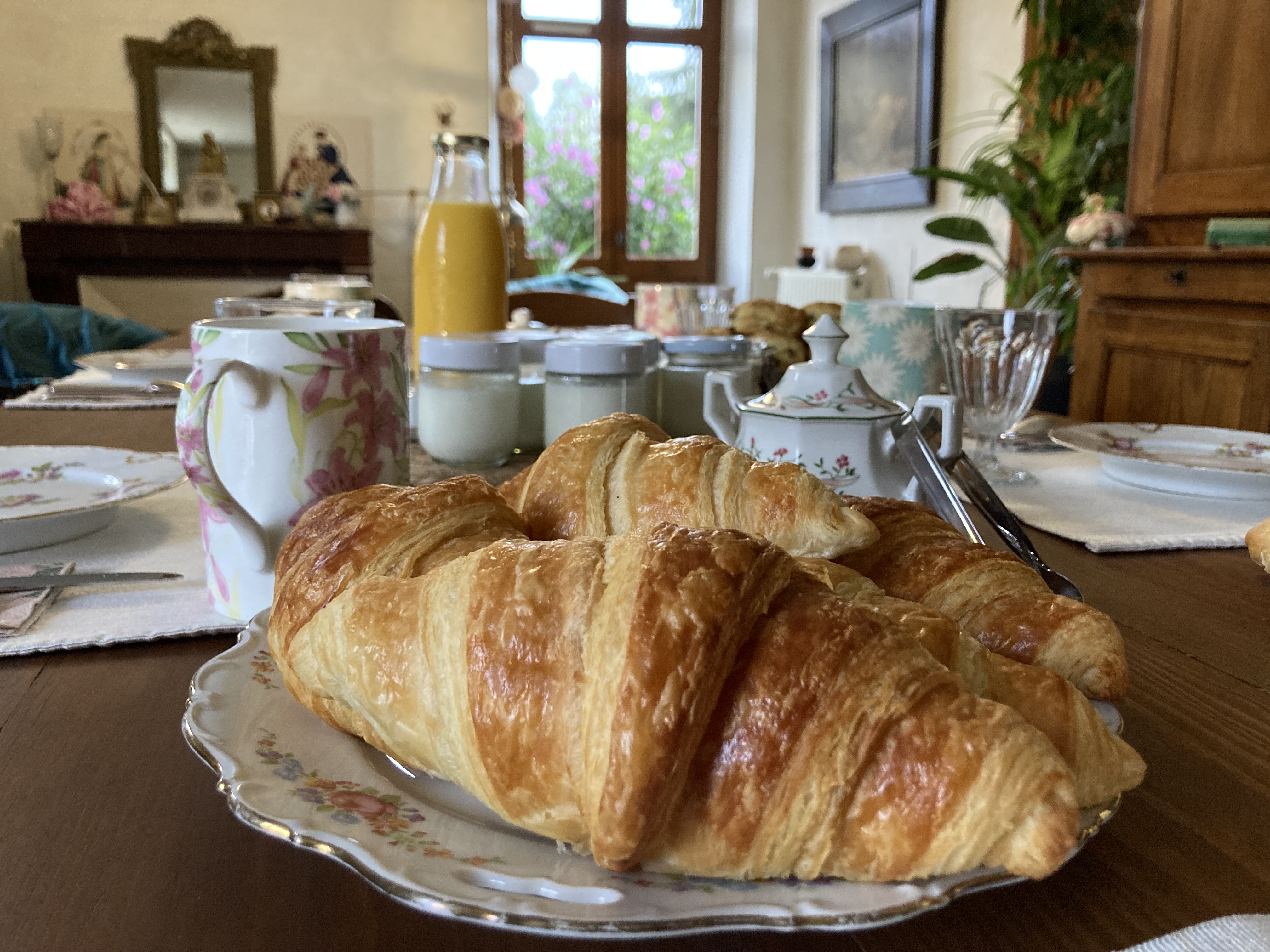 Deux nuits passées dans une grande chambre du 1er étage (une suite, en fait). Bravo à Marie Clotilde pour son accueil et sa constante bonne humeur. Et pour ses excellentes gourmandises sorties du four pour le petit déjeuner.