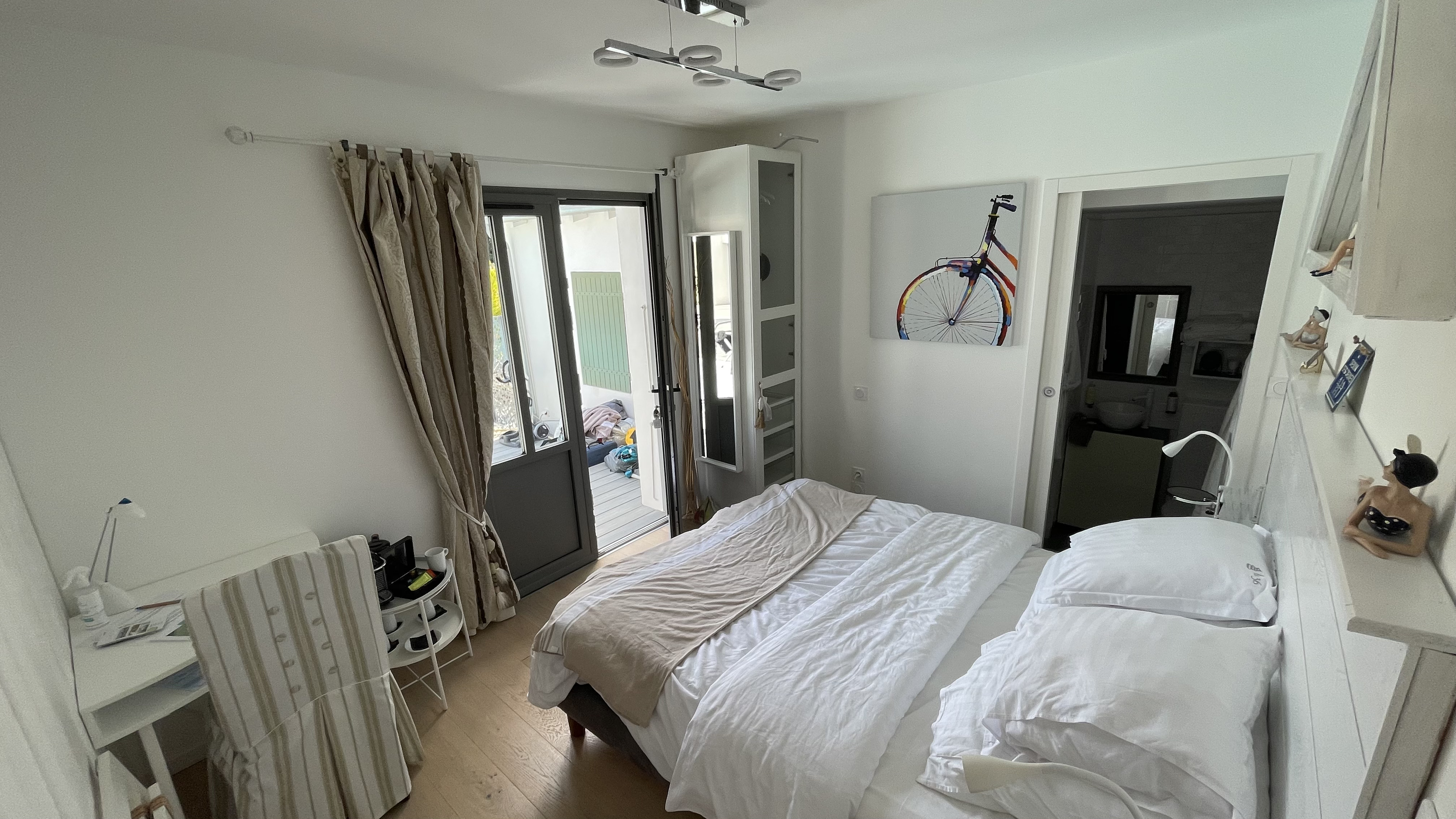 Magnifique séjour de 6 nuits en juillet 2021 ! Nous avions réservé la chambre Les bouées : espace, lumière, accès direct à la piscine, petite terrasse privative ... que demander de plus ? Par ailleurs, les infrastructures communes : piscine, babyfoot, garage pour les vélos électriques sont un réel atout ! Ajoutez à cela un accueil convivial et professionnel avec une réelle volonté de satisfaire les hôtes ! Pour conclure : à recommander les yeux fermés pour qui aime se ressourcer au calme et profiter des plaisirs du petit port de La Flotte qui est à 10 minutes de marche à peine ! Frédérique et Didier - Belgique