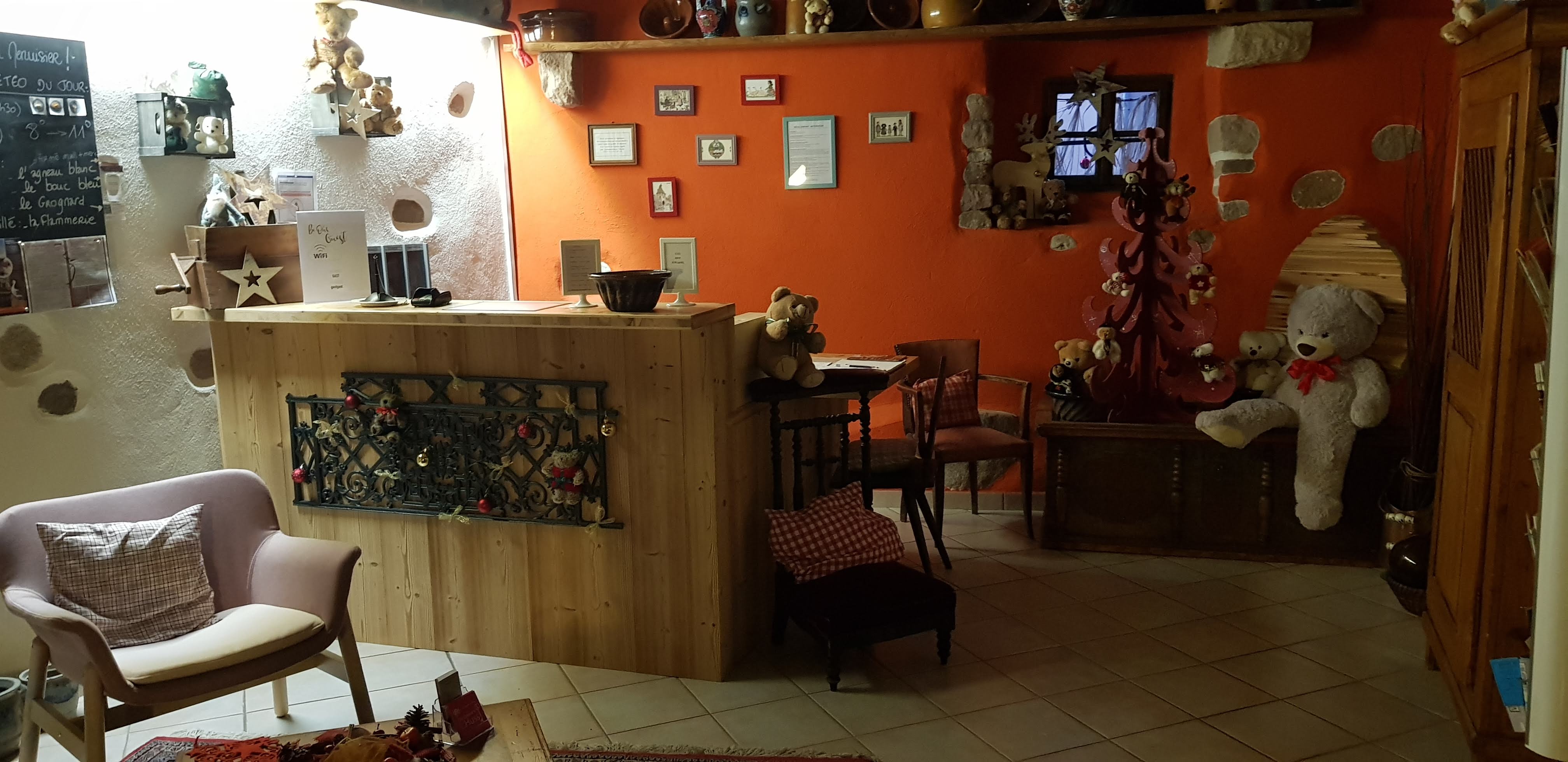 Lieu alsacien très agréable et caractéristique. Ne pas trouver une bouteille d'eau bon marché dans votre chambre à votre arrivée et un kit savon-shampooing dans la salle de bain vous oblige à vous débrouiller pour les acheter dès votre arrivée, après vous être rendu à l'hôtel et avoir déchargé vos bagages. Les radiateurs tièdes en hiver ne sont pas du plus grand confort. Même si cela n'a pas d'importance pour moi, je précise que la télévision (à tube cathodique de 14 pouces) dispose de moins d'une dizaine de chaînes gratuites. Le reste est crypté. La connexion Wi-Fi est disponible uniquement dans la salle de jeux et non dans la chambre. Nous sommes restés 2 nuits et personne n'a réparé notre chambre après la première nuit.